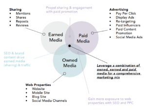 Leverage a combination of owned, earned and paid media for a comprehensive marketing mix.