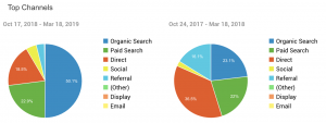 Starting in March 2018, we have seen rankings climb from a mere 5 keywords within the top 3, to 42 keywords ranking in the top 3.Additional we have seen rankings move from 32 keywords in the top 10 to 114 in the top 10. Playing our cards right meant that the volume of keywords ranked in the top 10 exceeded 1000+ searches a month