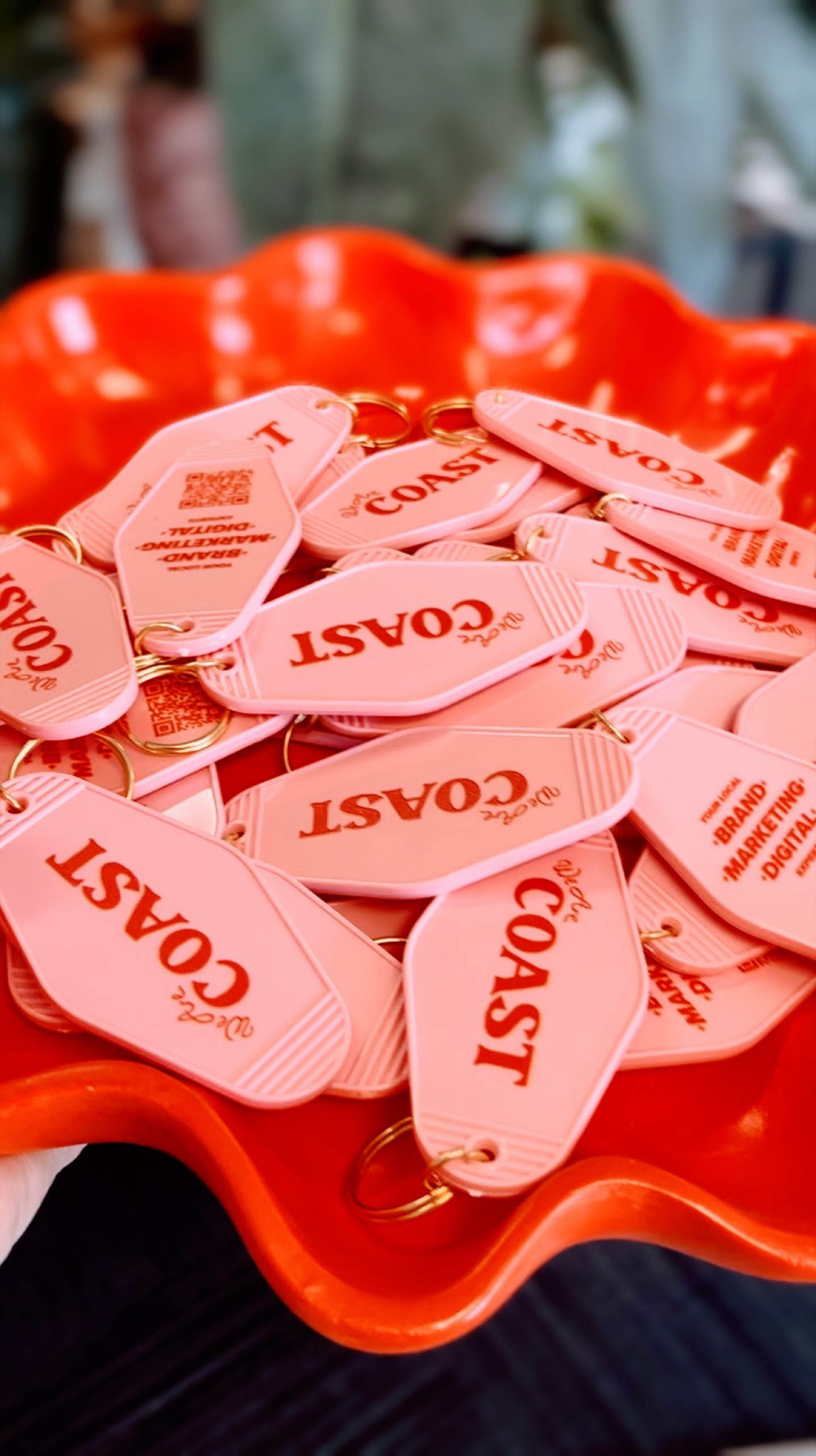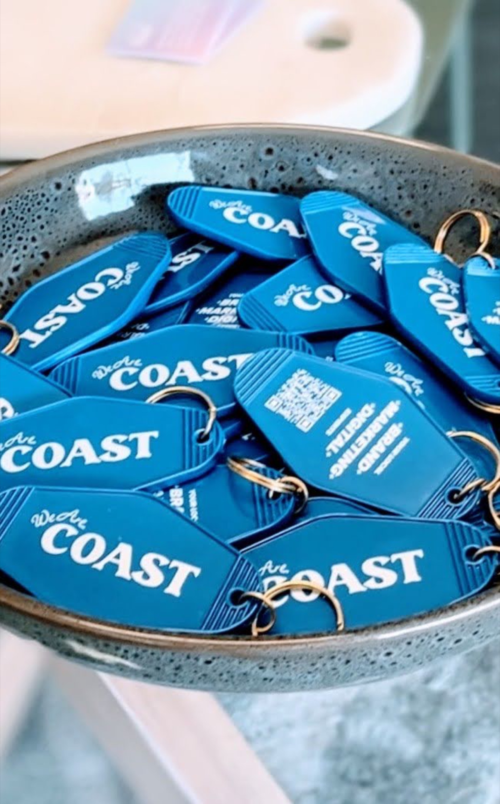 Our retro key tags have arrived! Featuring We Are Coast limited run seasonal logo on the front, gold hardware. Colours available are red on pink or hyperlink blue! Available for collection only from our studio on Murdock Street, Coffs Harbour – Pick up between Tuesday and Friday, 9am – 5pm.