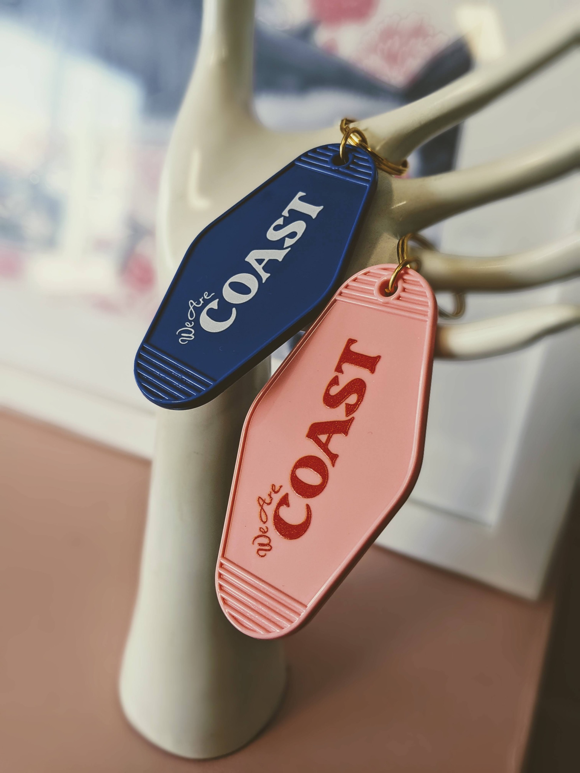 Our retro key tags have arrived! Featuring We Are Coast limited run seasonal logo on the front, gold hardware. Colours available are red on pink or hyperlink blue!